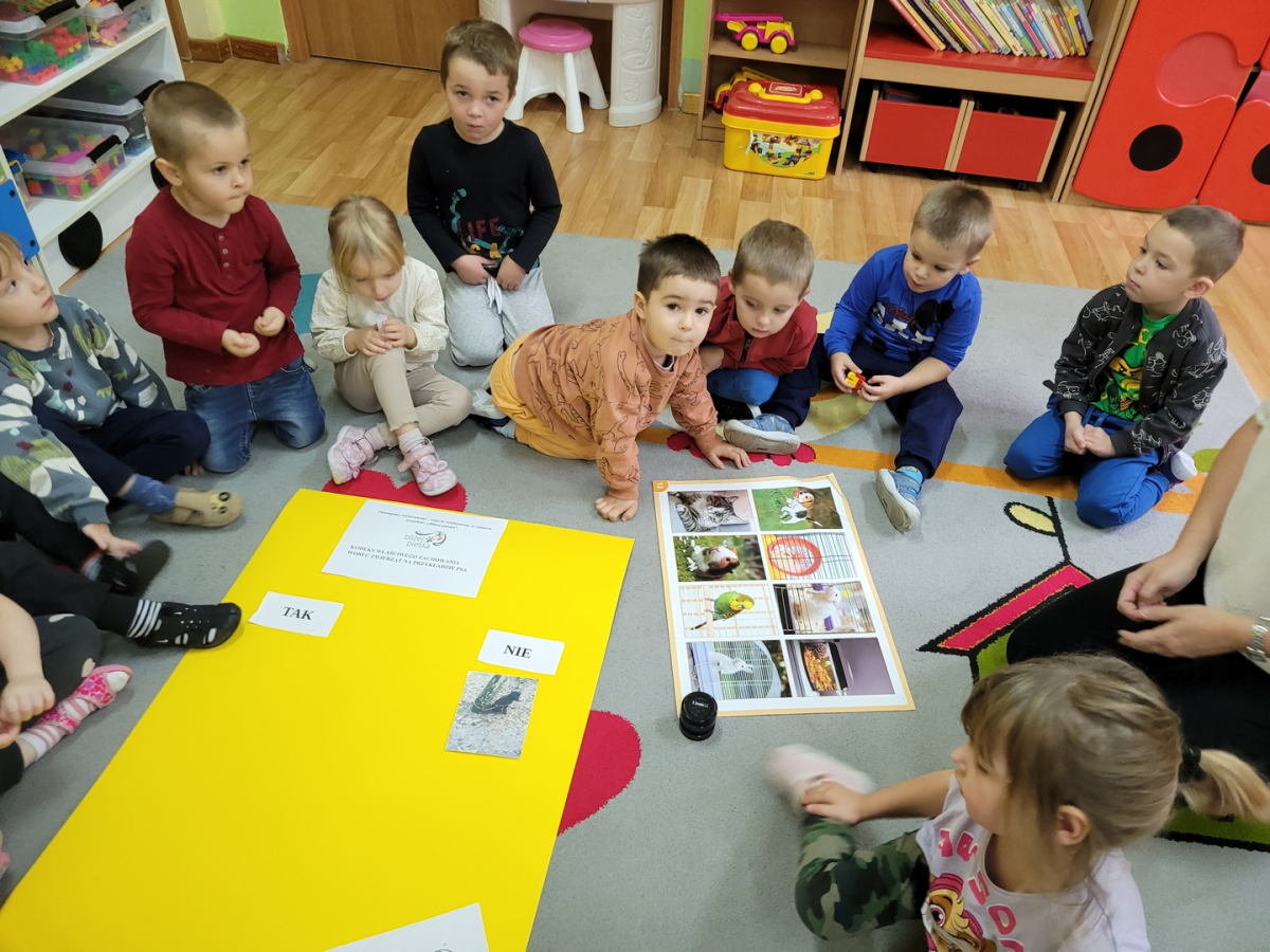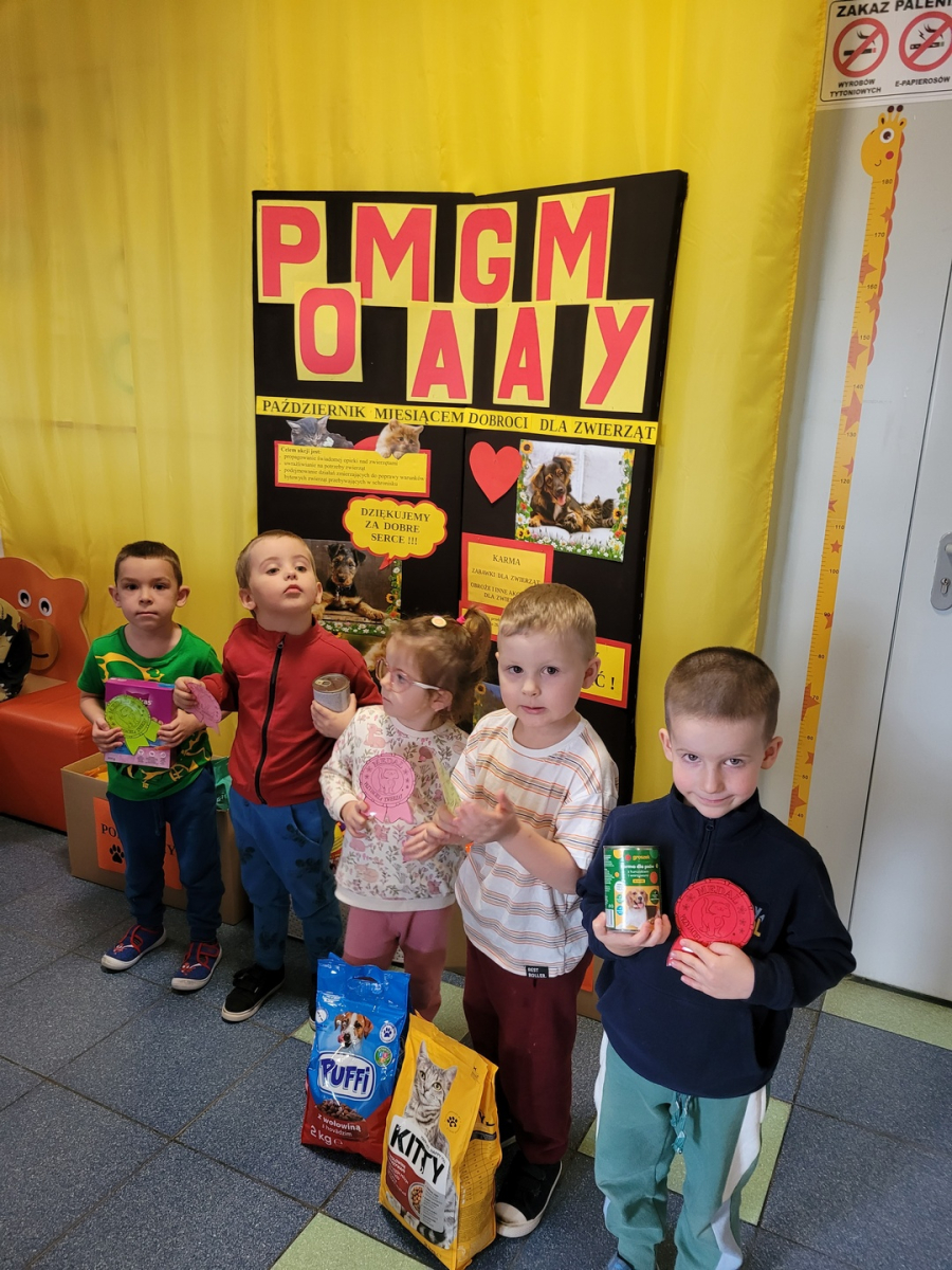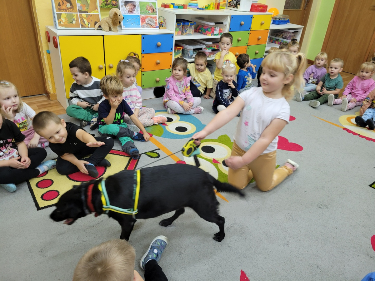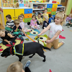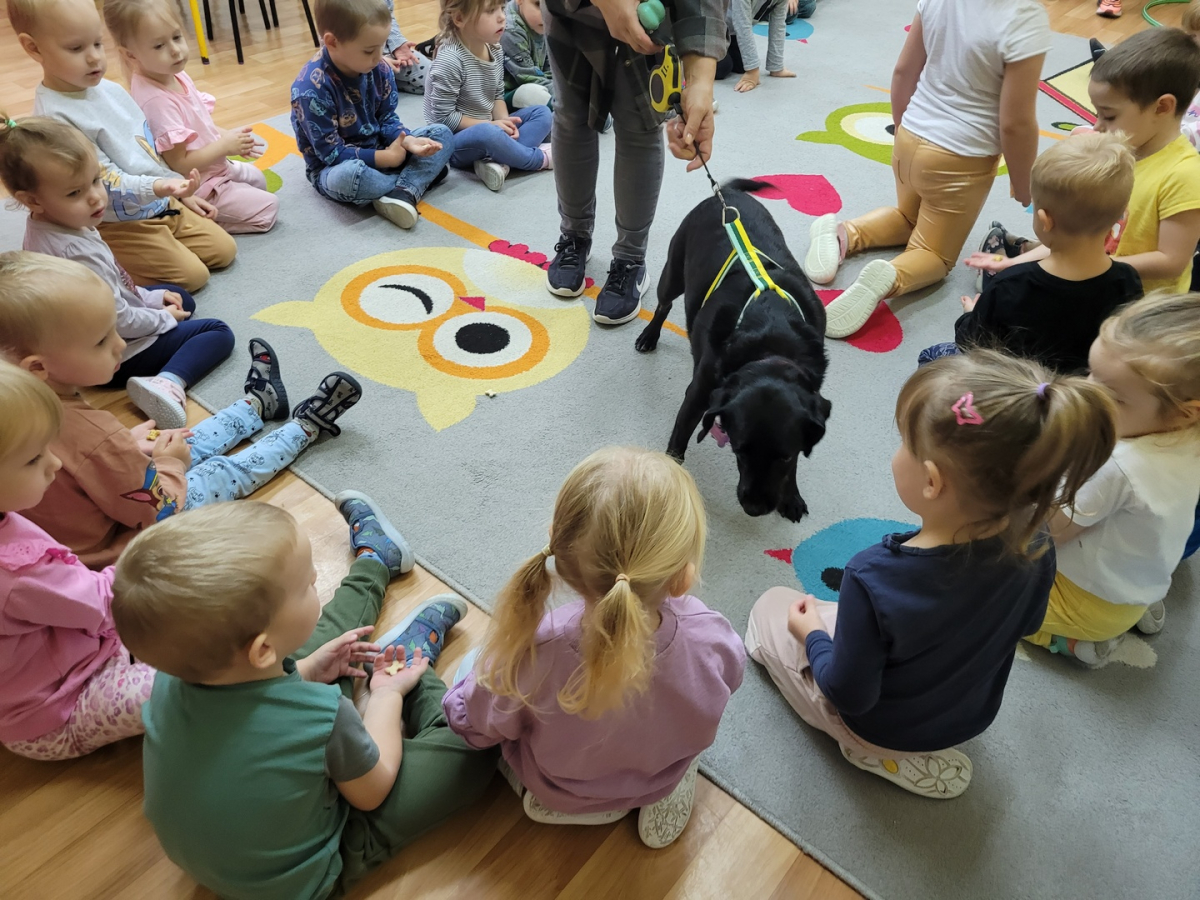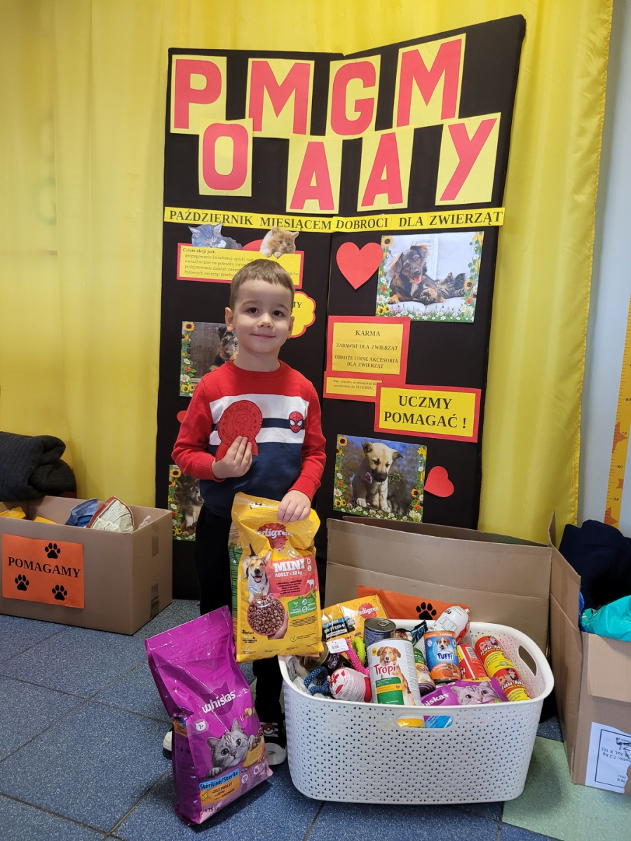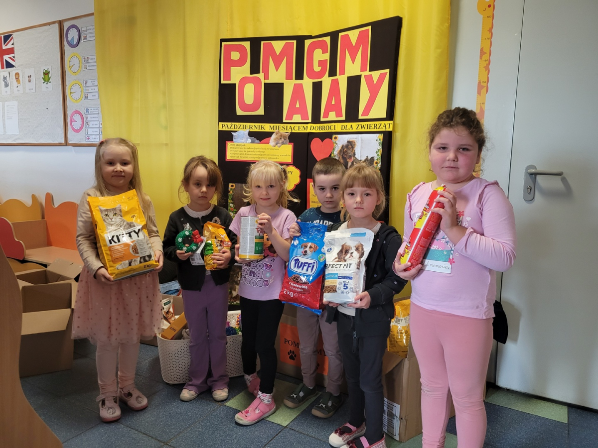 Nasze przedszkolaki po raz kolejny wzięły udział w projekcie „Bliżej pieska”, którego celem było uwrażliwienie przedszkolaków na potrzeby zwierząt. Dzieci uczyły się, jak opiekować się zwierzętami, poznały różne rasy psów, prawa zwierząt oraz zasady bezpiecznego zachowania wobec nich. Wspólnie stworzyły „Kodeks przyjaciela zwierząt”, wykonały piękne prace plastyczne, przeglądały albumy pełne zdjęć naszych czworonożnych przyjaciół. Aktywnie włączyliśmy się w zbiórkę karmy dla zwierząt w schronisku. Dzieci wraz z rodzicami wzięły udział w konkursie plastycznym ,,Psiaki, kociaki i inne zwierzaki”. Miały możliwość udziału w dogoterapii oraz spotkaniu z psem Kai o imieniu ,,Niunio” oraz kotem podopiecznym ze Stowarzyszenia Milejów Dla Zwierząt.