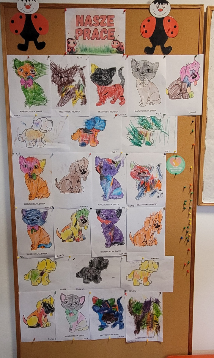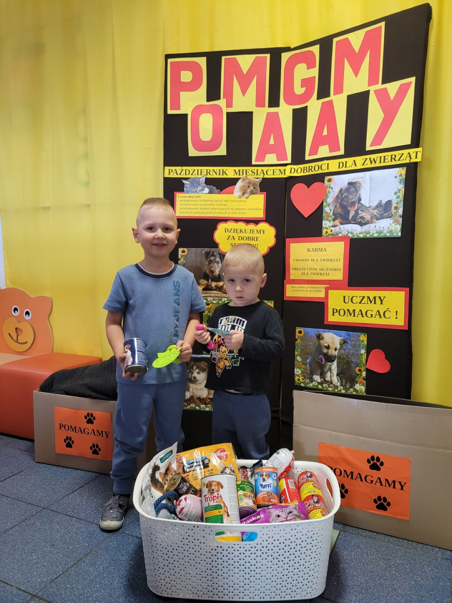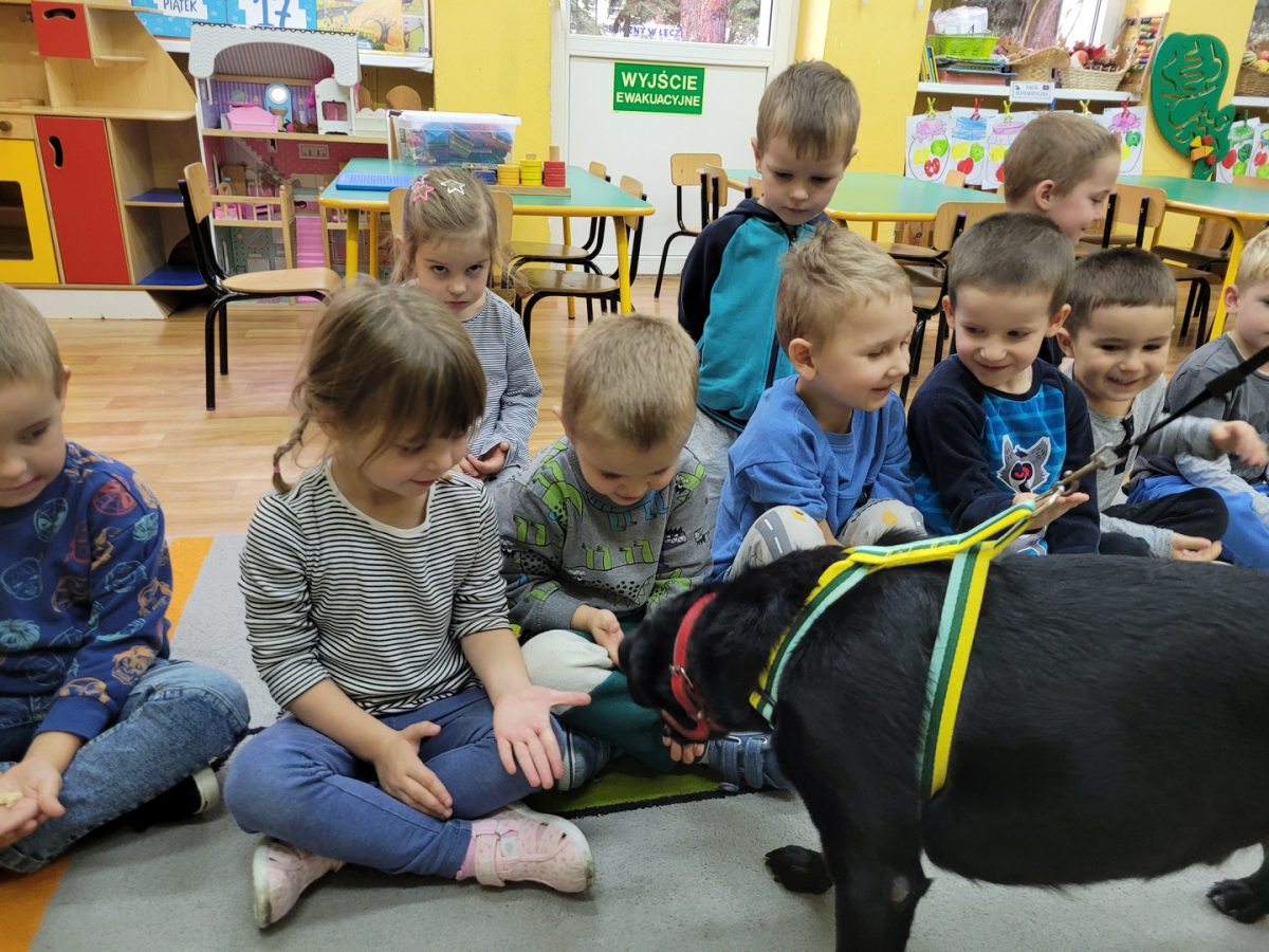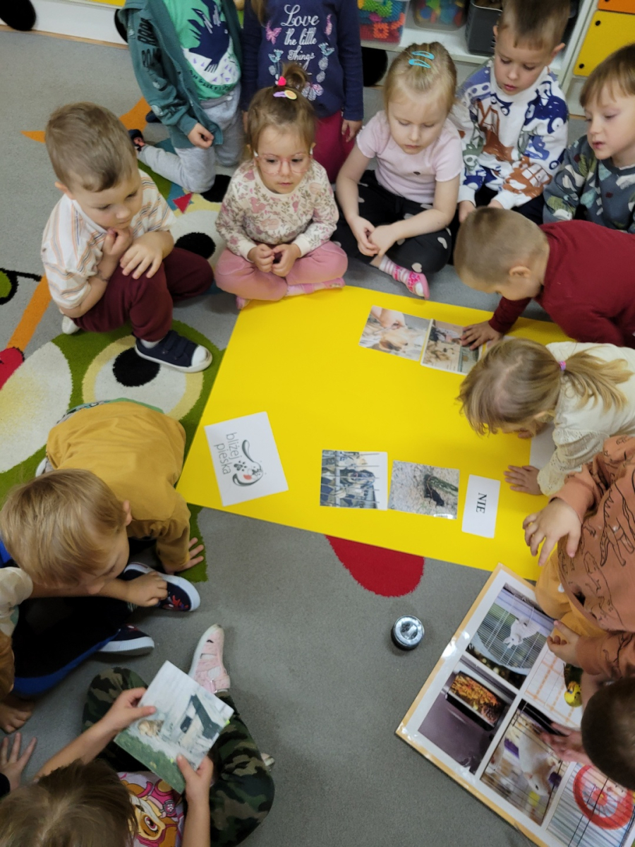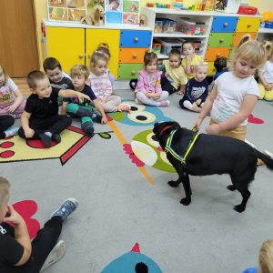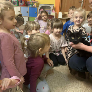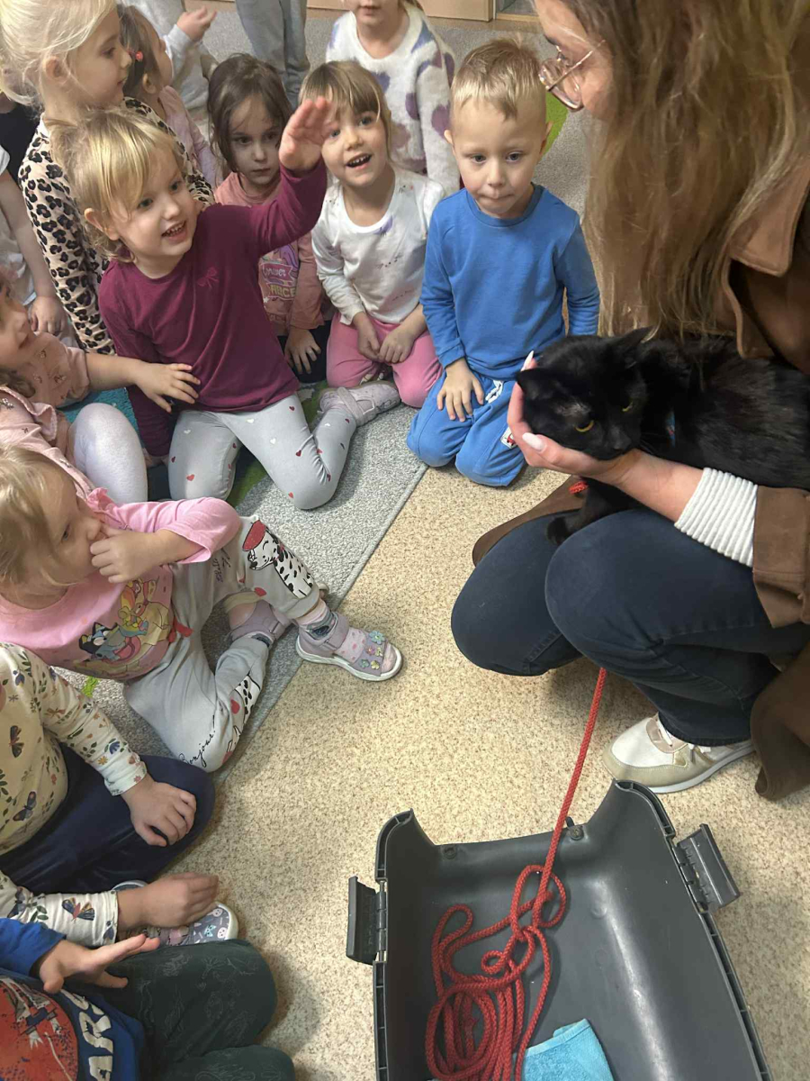 Nasze przedszkolaki po raz kolejny wzięły udział w projekcie „Bliżej pieska”, którego celem było uwrażliwienie przedszkolaków na potrzeby zwierząt. Dzieci uczyły się, jak opiekować się zwierzętami, poznały różne rasy psów, prawa zwierząt oraz zasady bezpiecznego zachowania wobec nich. Wspólnie stworzyły „Kodeks przyjaciela zwierząt”, wykonały piękne prace plastyczne, przeglądały albumy pełne zdjęć naszych czworonożnych przyjaciół. Aktywnie włączyliśmy się w zbiórkę karmy dla zwierząt w schronisku. Dzieci wraz z rodzicami wzięły udział w konkursie plastycznym ,,Psiaki, kociaki i inne zwierzaki”. Miały możliwość udziału w dogoterapii oraz spotkaniu z psem Kai o imieniu ,,Niunio” oraz kotem podopiecznym ze Stowarzyszenia Milejów Dla Zwierząt.