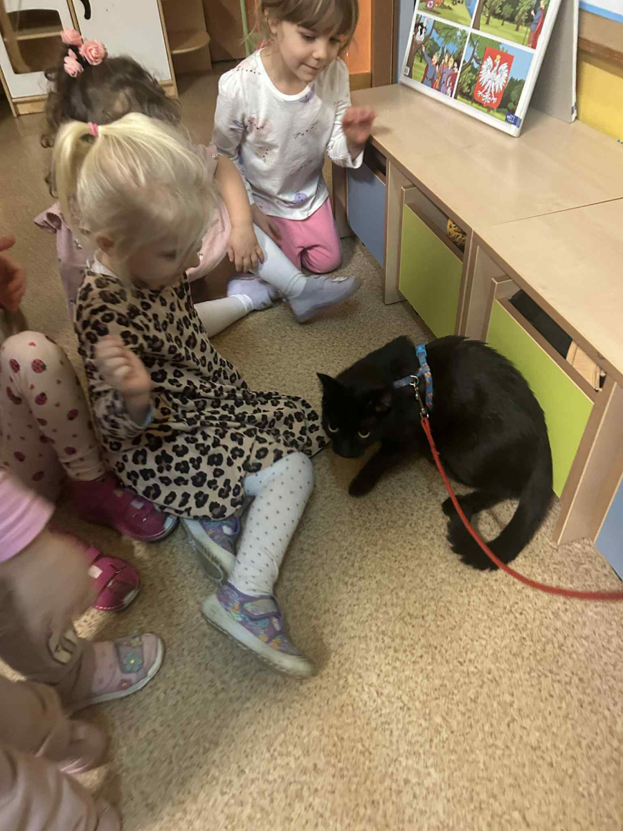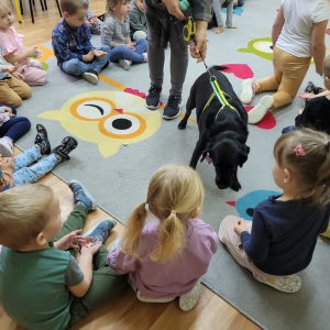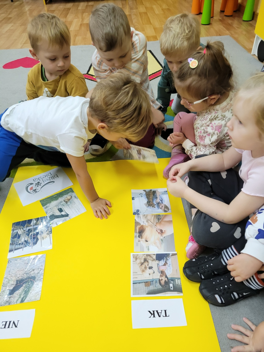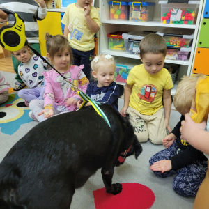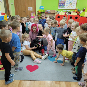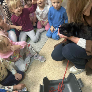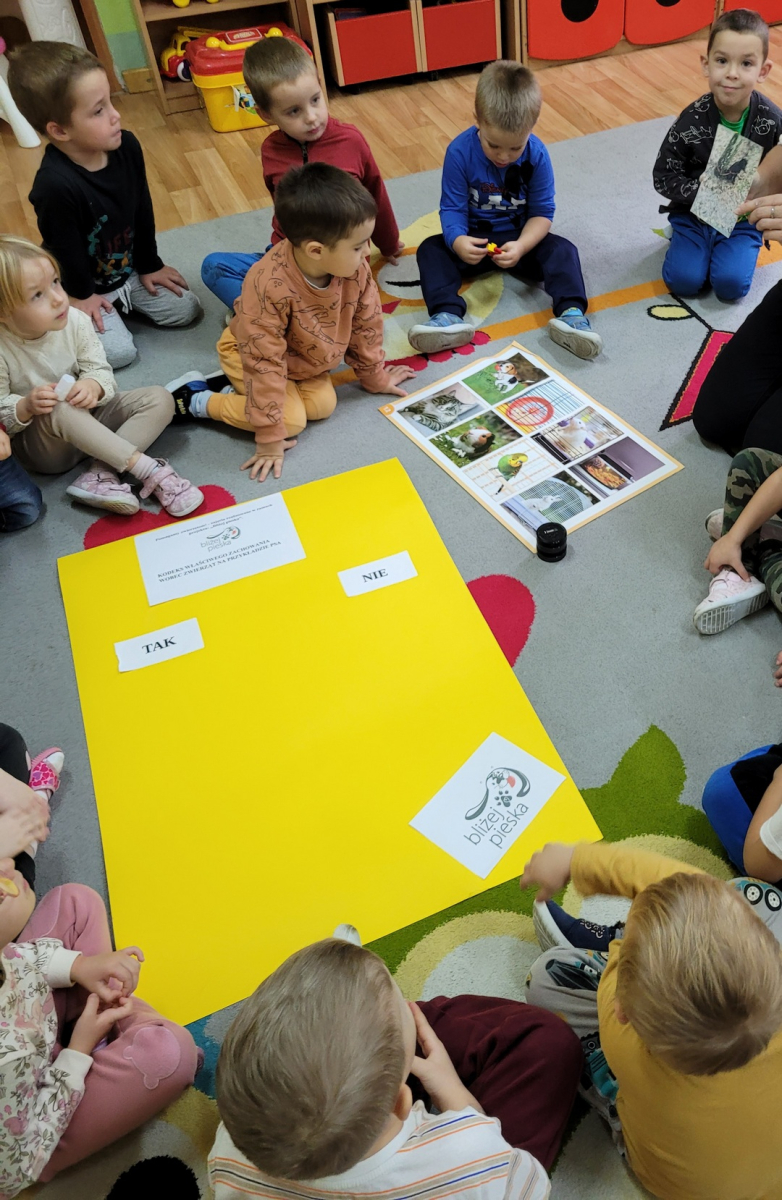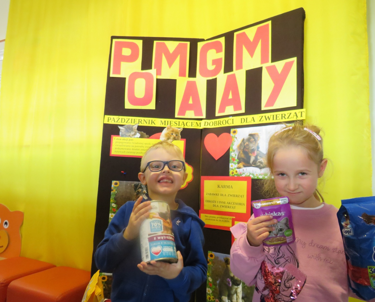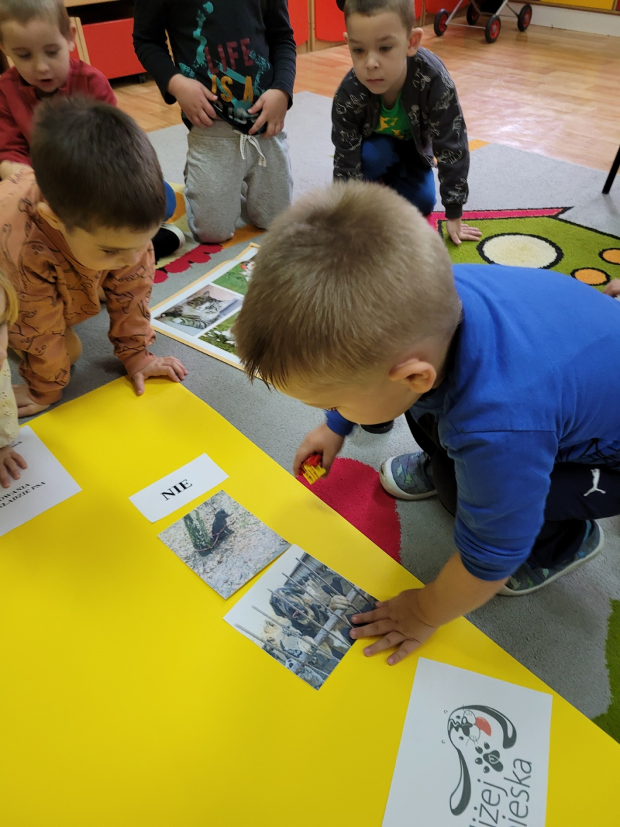 Nasze przedszkolaki po raz kolejny wzięły udział w projekcie „Bliżej pieska”, którego celem było uwrażliwienie przedszkolaków na potrzeby zwierząt. Dzieci uczyły się, jak opiekować się zwierzętami, poznały różne rasy psów, prawa zwierząt oraz zasady bezpiecznego zachowania wobec nich. Wspólnie stworzyły „Kodeks przyjaciela zwierząt”, wykonały piękne prace plastyczne, przeglądały albumy pełne zdjęć naszych czworonożnych przyjaciół. Aktywnie włączyliśmy się w zbiórkę karmy dla zwierząt w schronisku. Dzieci wraz z rodzicami wzięły udział w konkursie plastycznym ,,Psiaki, kociaki i inne zwierzaki”. Miały możliwość udziału w dogoterapii oraz spotkaniu z psem Kai o imieniu ,,Niunio” oraz kotem podopiecznym ze Stowarzyszenia Milejów Dla Zwierząt.