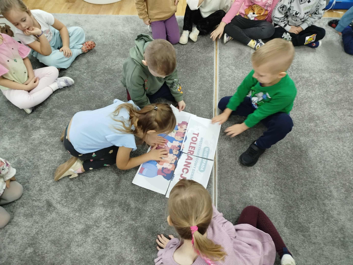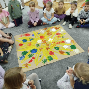 Wczoraj w naszym przedszkolu obchodziliśmy Międzynarodowy Dzień Tolerancji, który ma na celu zwiększenie świadomości społecznej na temat znaczenia szacunku i akceptacji różnorodności. Specjaliści przeprowadzili zajęcia zespołowe w grupach dzieci 5-letnich. Wspólnie obejrzeliśmy film edukacyjny nt. tolerancji, następnie wykonaliśmy piękne prace plastyczne- przedszkolaki odbijały swoje dłonie, co było przypieczętowaniem tolerancyjności wobec naszego odmiennego wyglądu, myśli, charakteru.