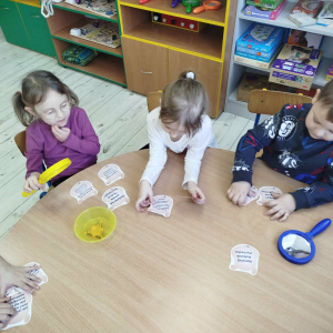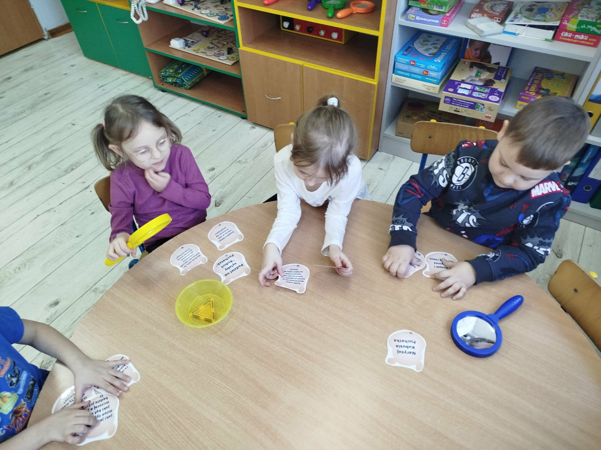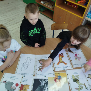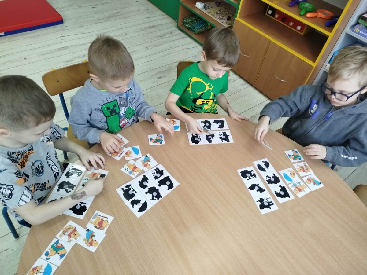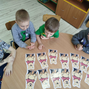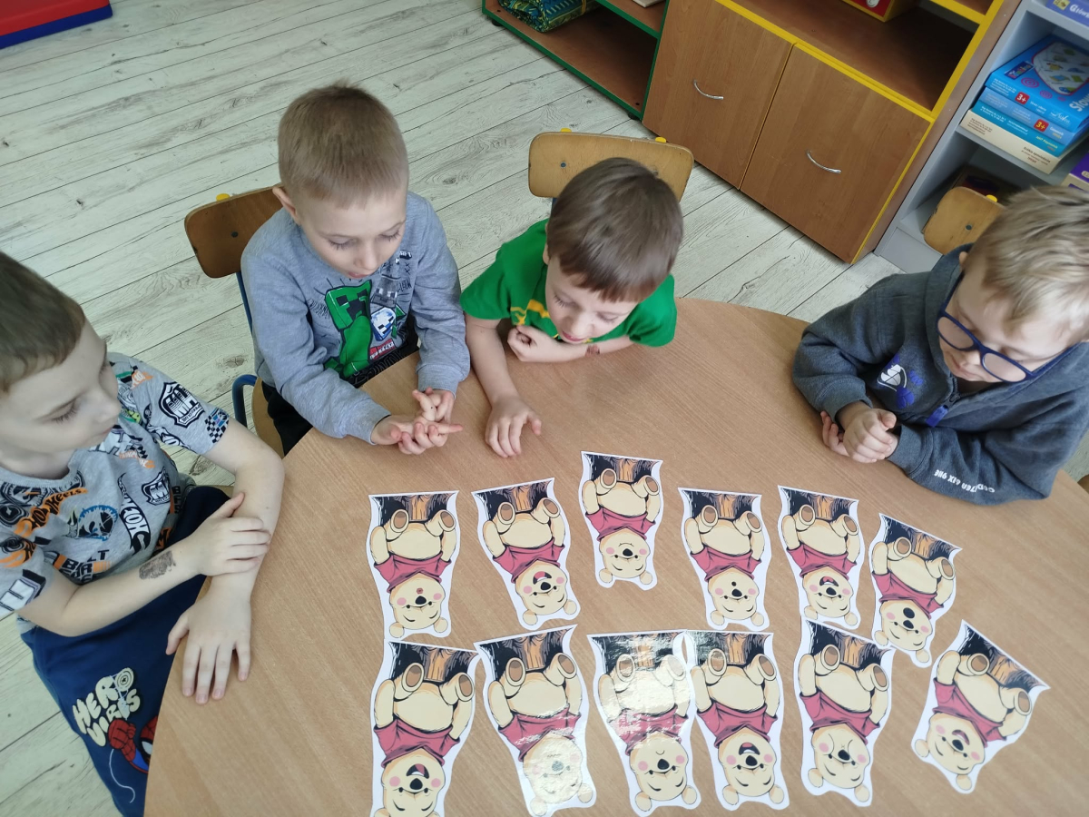 W „Dniu Kubusia Puchatka” dzieci były zachęcane do swobodnej wypowiedzi o bajce. Przedszkolaki przypomniały sobie o jej bohaterach. Usprawniały narządy artykulacyjne z Kubusiem. Odbyła się zabawa ruchowa. Dopasowywały cienie do obrazka i opowiadały co na nim widzą.