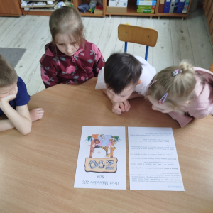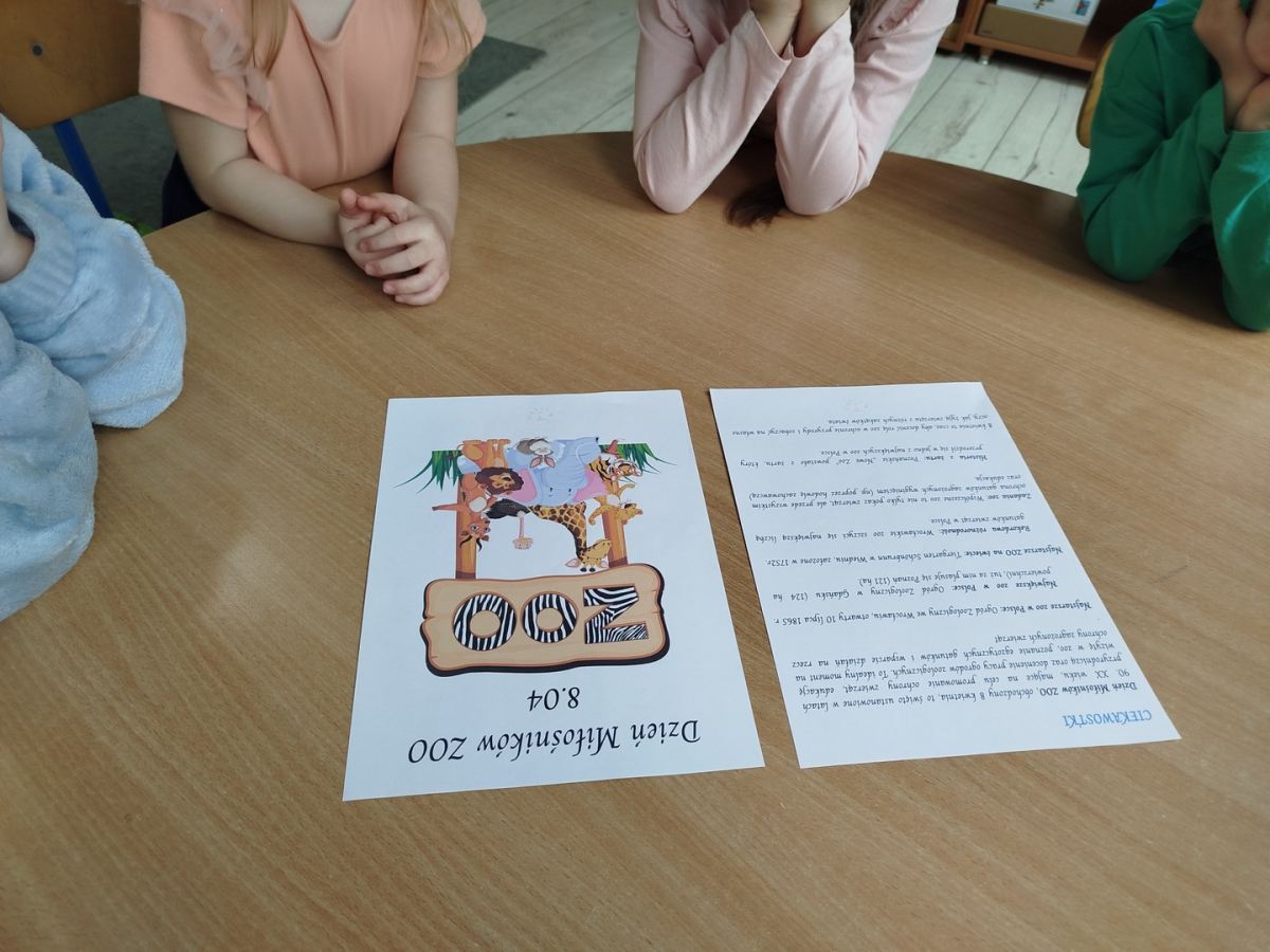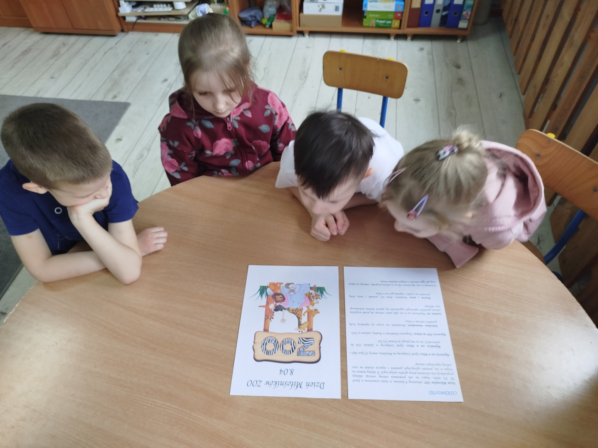 W tym dniu dzieci wysłuchały ciekawostek o „ZOO”. Usprawniały narządy artykulacyjne z pandą rudą. Przedszkolaki wybrały się na „Wycieczkę do ZOO” z Zosią Małą Nauczycielką – kodując trasę, oraz słuchały odgłosów zwierząt na pulpicie interaktywnym. Odgadły zagadki „Miłośników ZOO”.