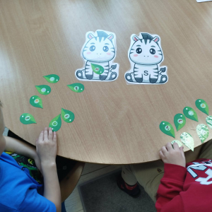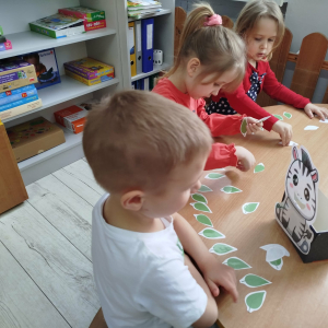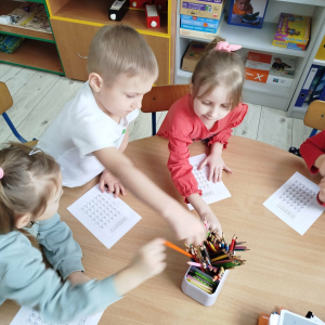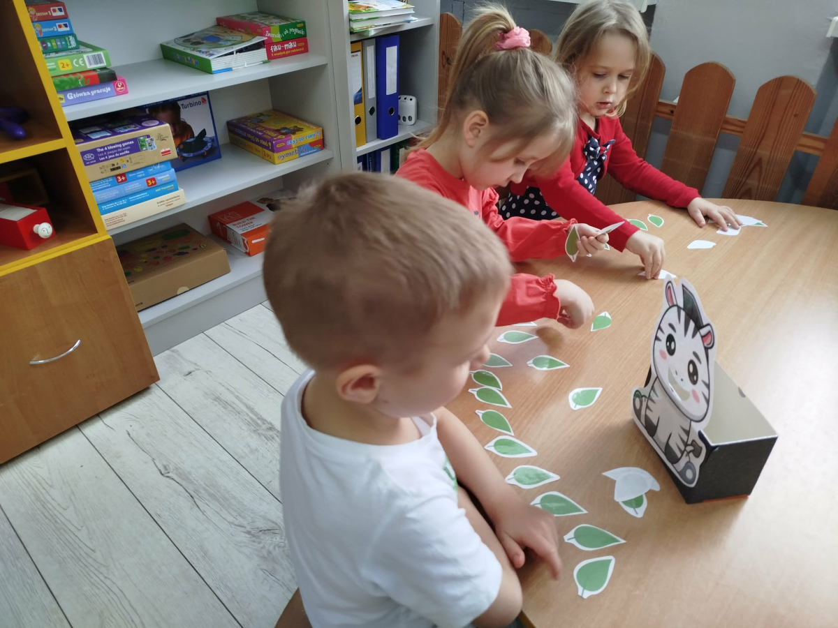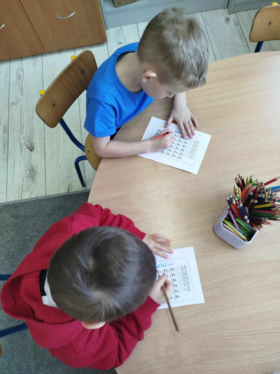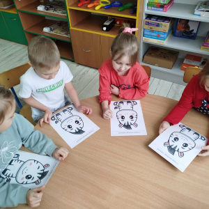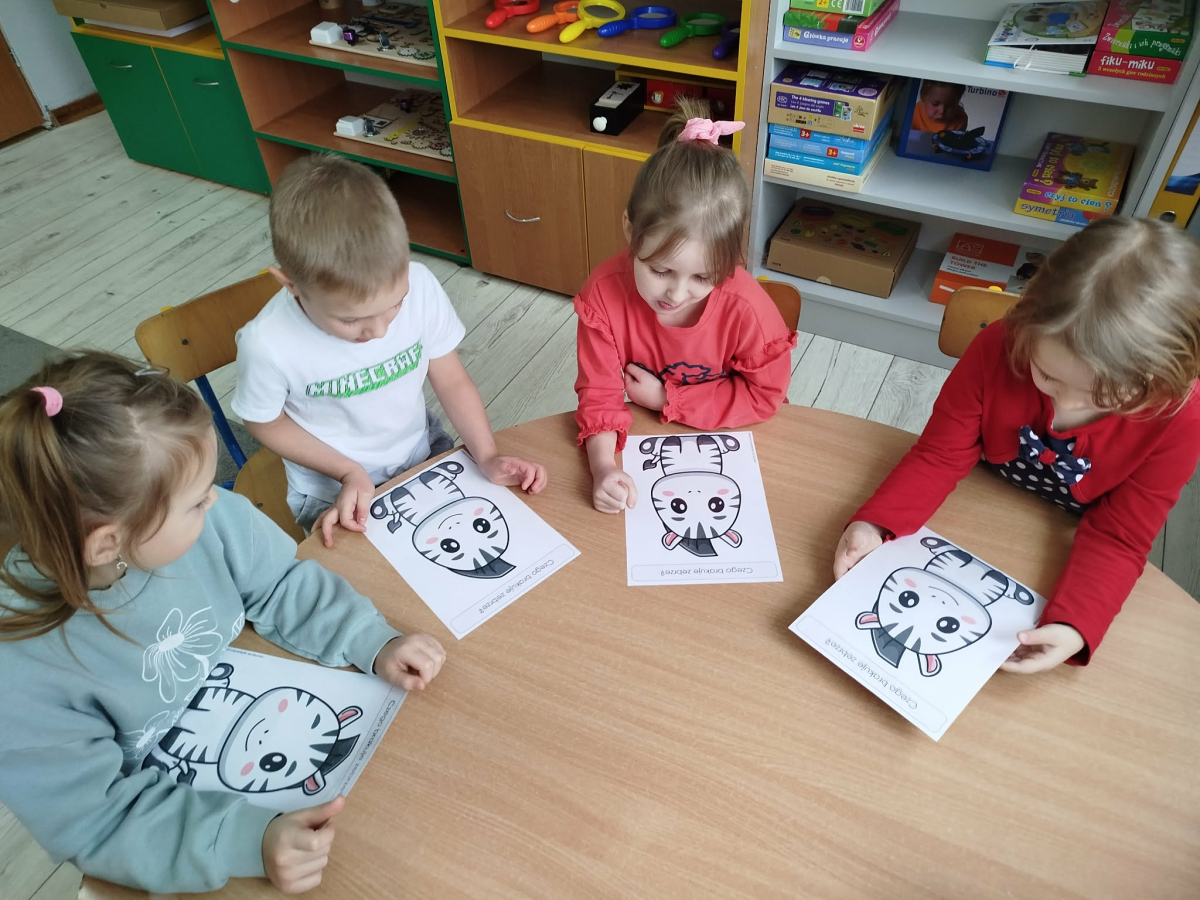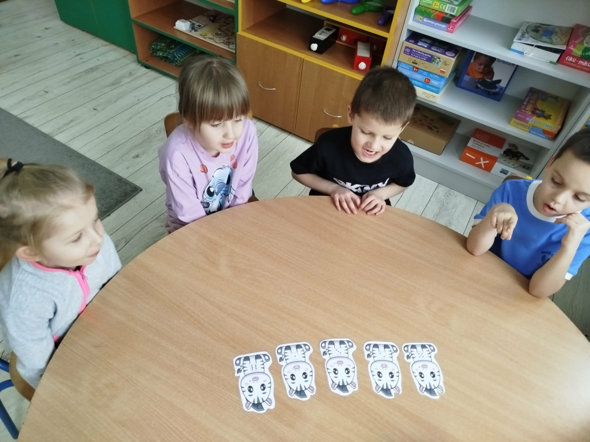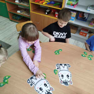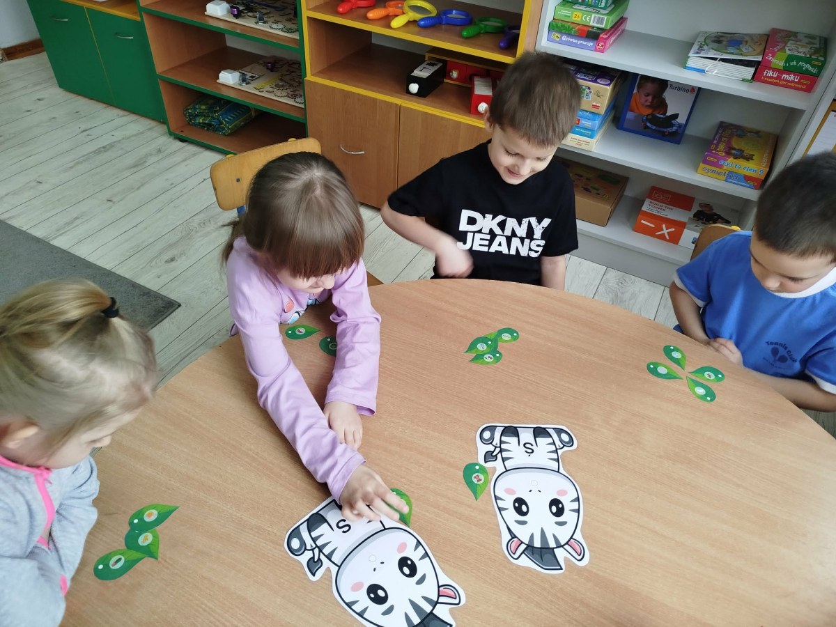 W tym tygodniu przedszkolaki usprawniały narządy mowy z obrazkami zebry. Ćwiczyły właściwy tor oddechowy. Dzieci różnicowały głoski „ś” i „s”. Usprawniały liczenie na materiale konkretnym.