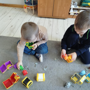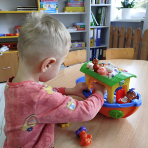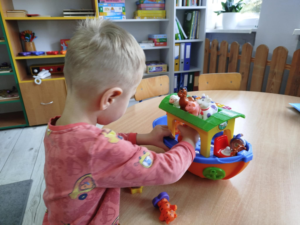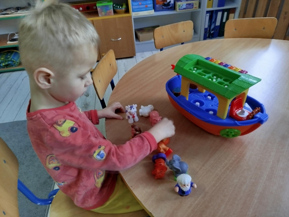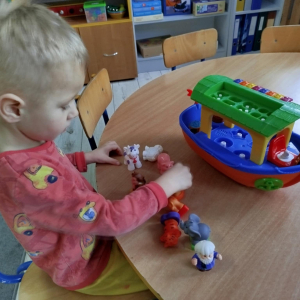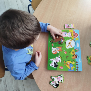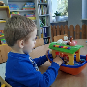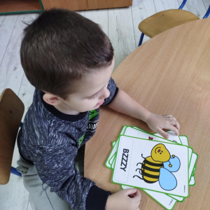 Dzieci usprawniały narządy artykulacyjne z obrazkami przedstawiającymi wiejskie zwierzęta. Odbyły się ćwiczenia dźwiękonaśladowcze.