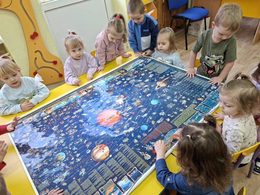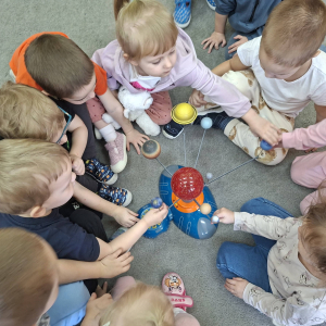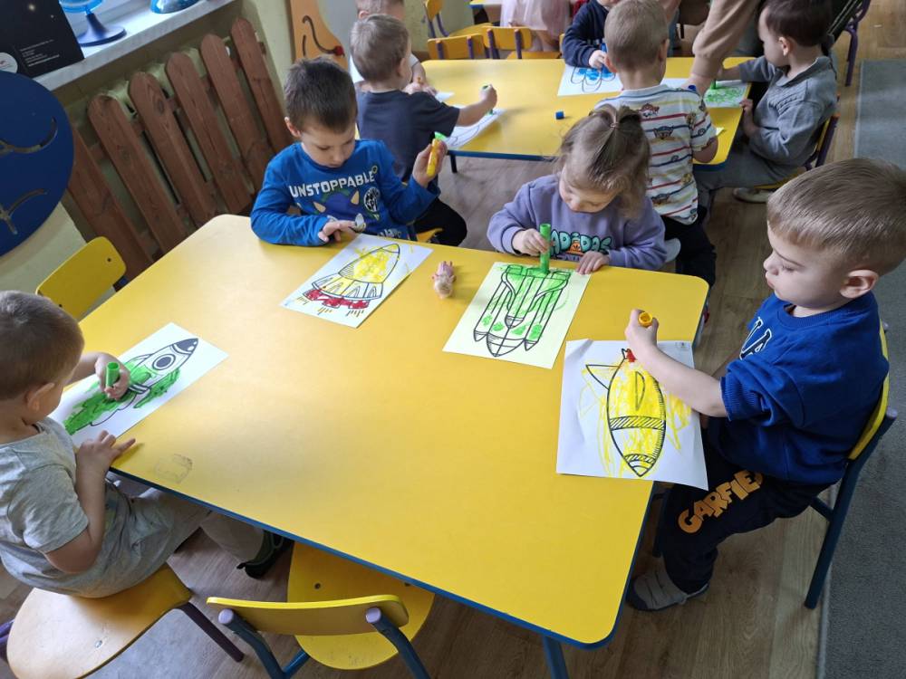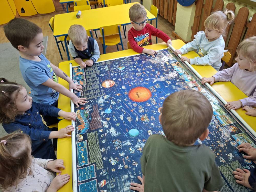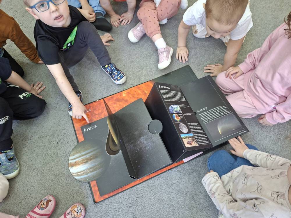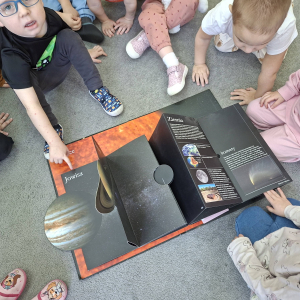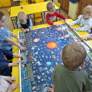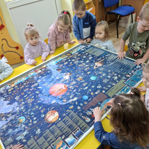 To były nasze pierwsze zajęcia wprowadzające nas w tajemniczy świat kosmosu. Bawiąc się poznawaliśmy gwiazdy i planety, oglądaliśmy Ziemię i braliśmy udział w kreatywnych zajęciach plastycznych.