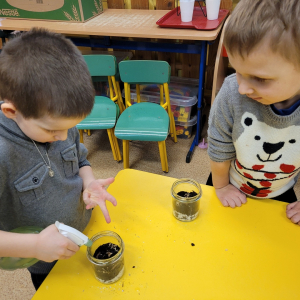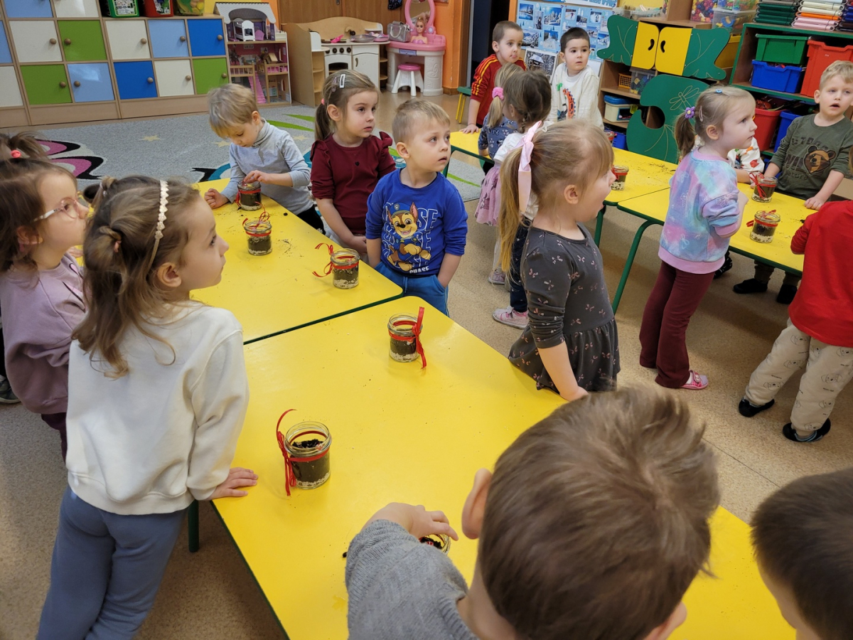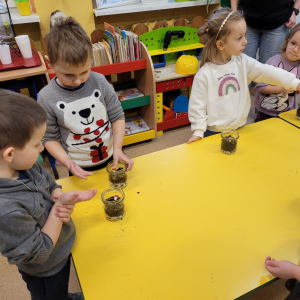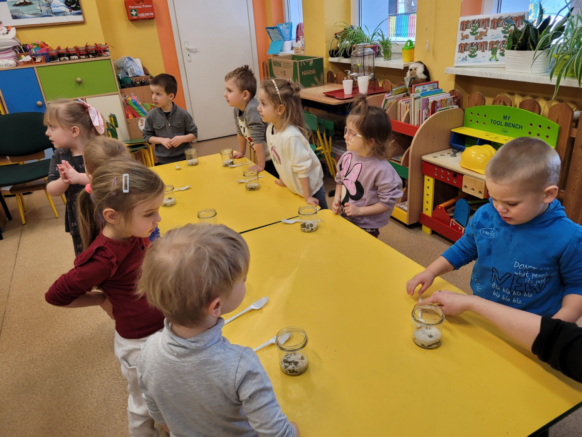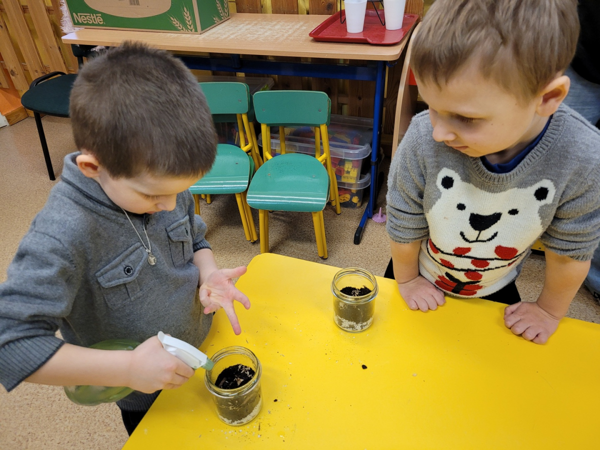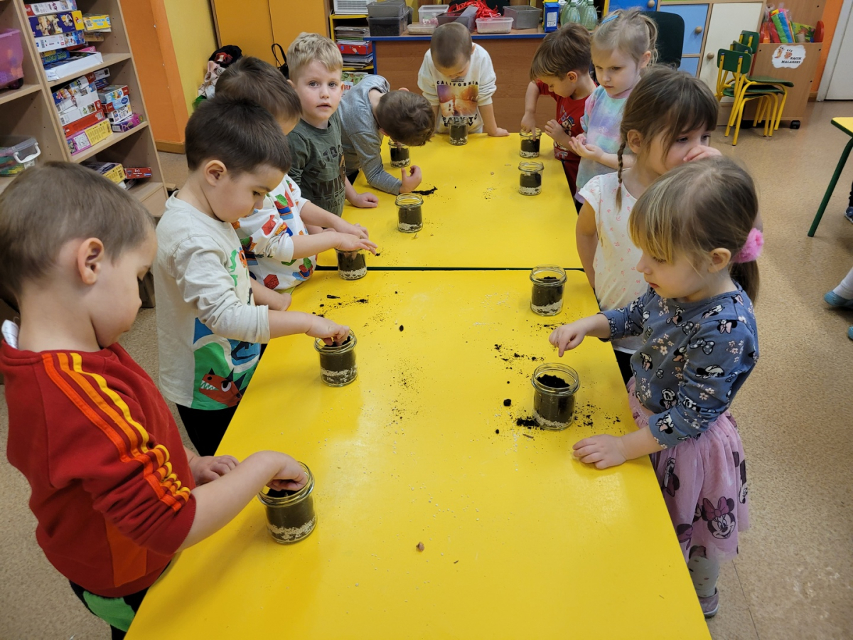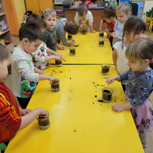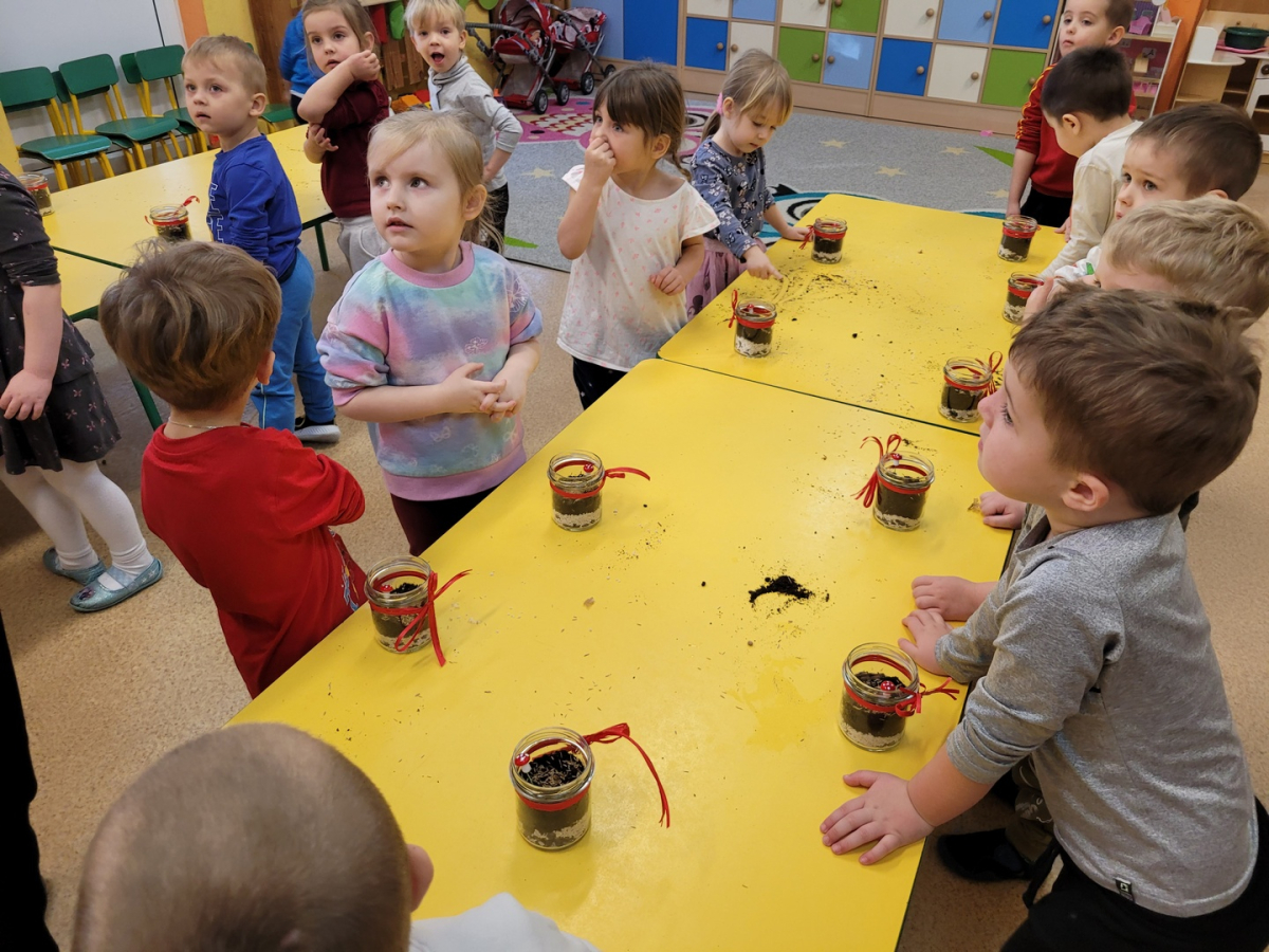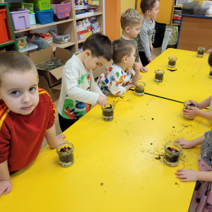 Przedszkolaki z grupy ,,Biedronki” wzięły udział w warsztatach przyrodniczych ,,Las w słoiku”. W trakcie warsztatów dzieci wykorzystując ziemię, kamyki, żwirek ,nasiona oraz cebulki kwiatów tworzyły miniaturowy las w słoiku. W trakcie warsztatów dzieci dowiedziały się wielu przydatnych informacji o ekologii.Tworzenie miniaturowego lasu było także świetną okazją do rozwoju zdolności manualnych, orientacji przestrzennej oraz wyobraźni dziecięcej.