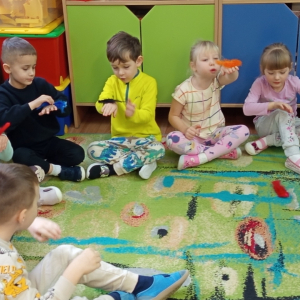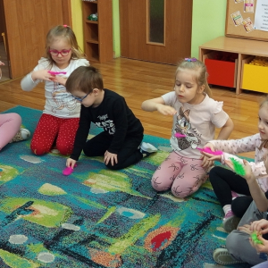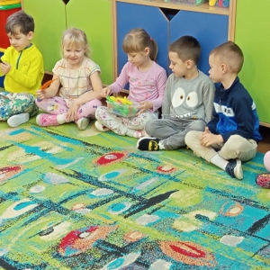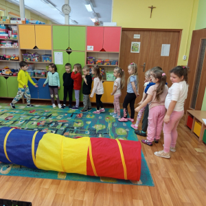 Misie realizują program profilaktyczny " Logopedia w ruchu". Pani Ania odwiedza nas w piątki i prowadzi zajęcia z dziećmi.
