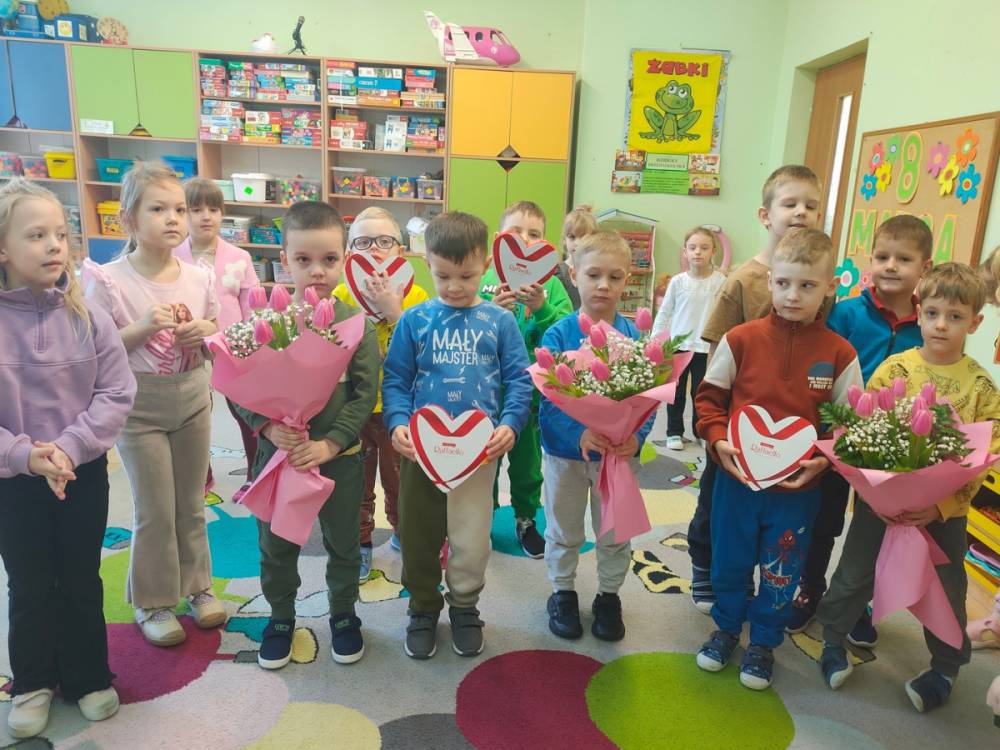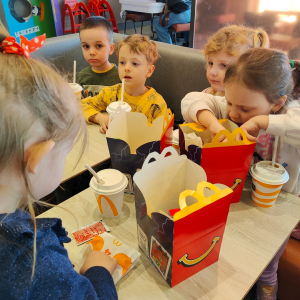 "To ósmy marca i święto kobiet wszystkie dziewczynki są wyjątkowe". Dzień kobiet w grupie Żabki obchodziliśmy uroczyście. Były życzenia, laurki, kwiaty i oczywiście coś na co dzieci bardzo czekały to wyjście do Mc Donald's całą grupą.