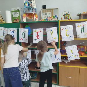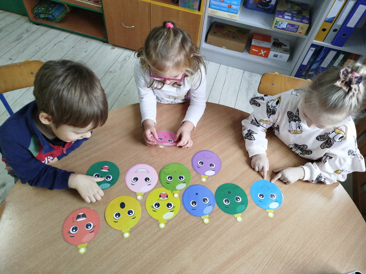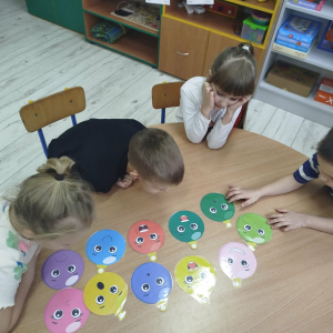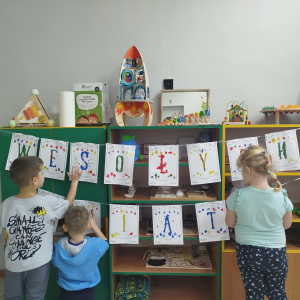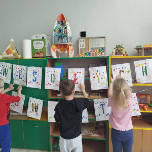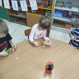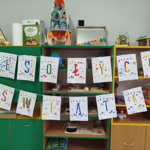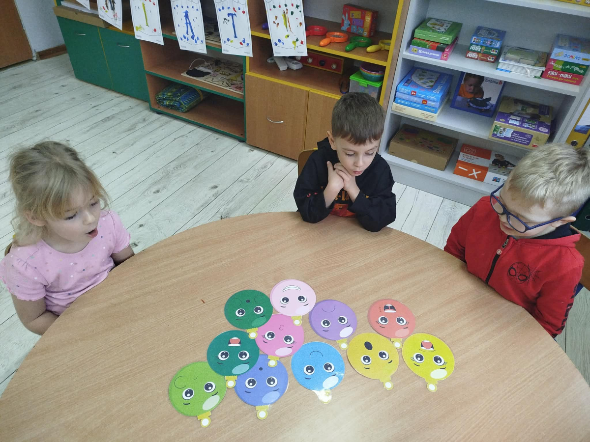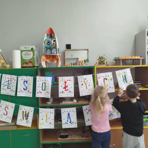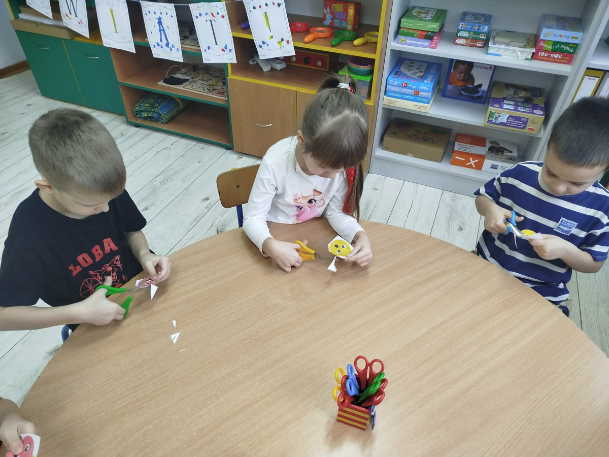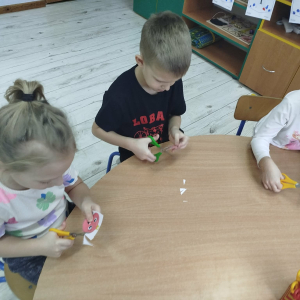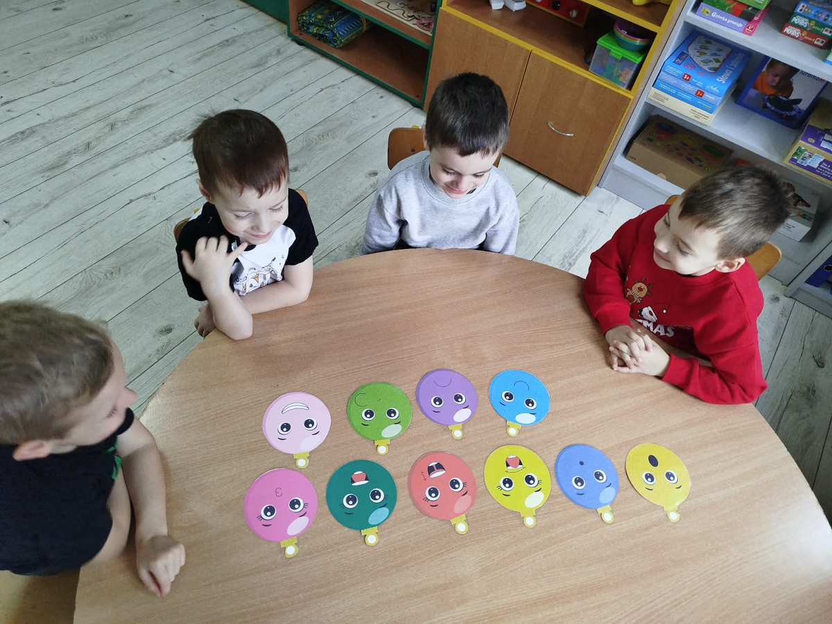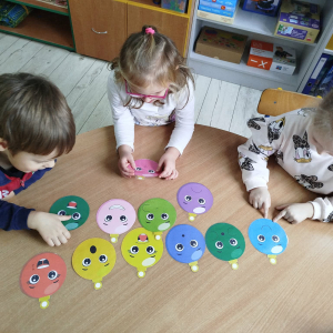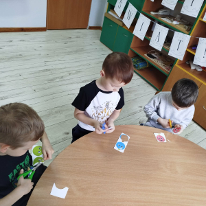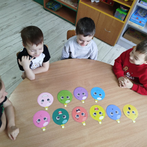 W ostatnich dniach, przed Świętami Bożego Narodzenia, podczas zajęć logopedycznych przedszkolaki dekorowały salę logopedyczną. Dzieci usprawniały narządy artykulacyjne z obrazkami przedstawiającymi bombki choinkowe. Ćwiczyły percepcję wzrokową, nazwy kolorów i spostrzegawczość. Usprawniały motorykę małą – wycinając bombki z papieru kolorowego. Na zakończenie odbyła się zabawa – malowanie palcami napisu „WESOŁYCH ŚWIĄT”.
