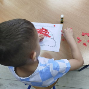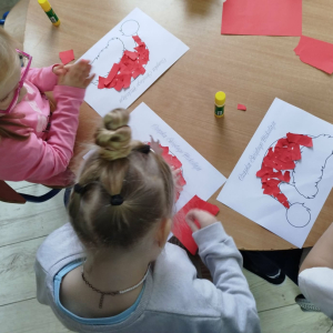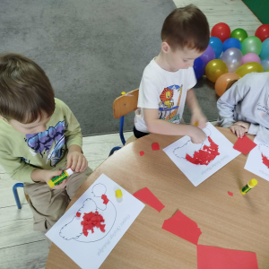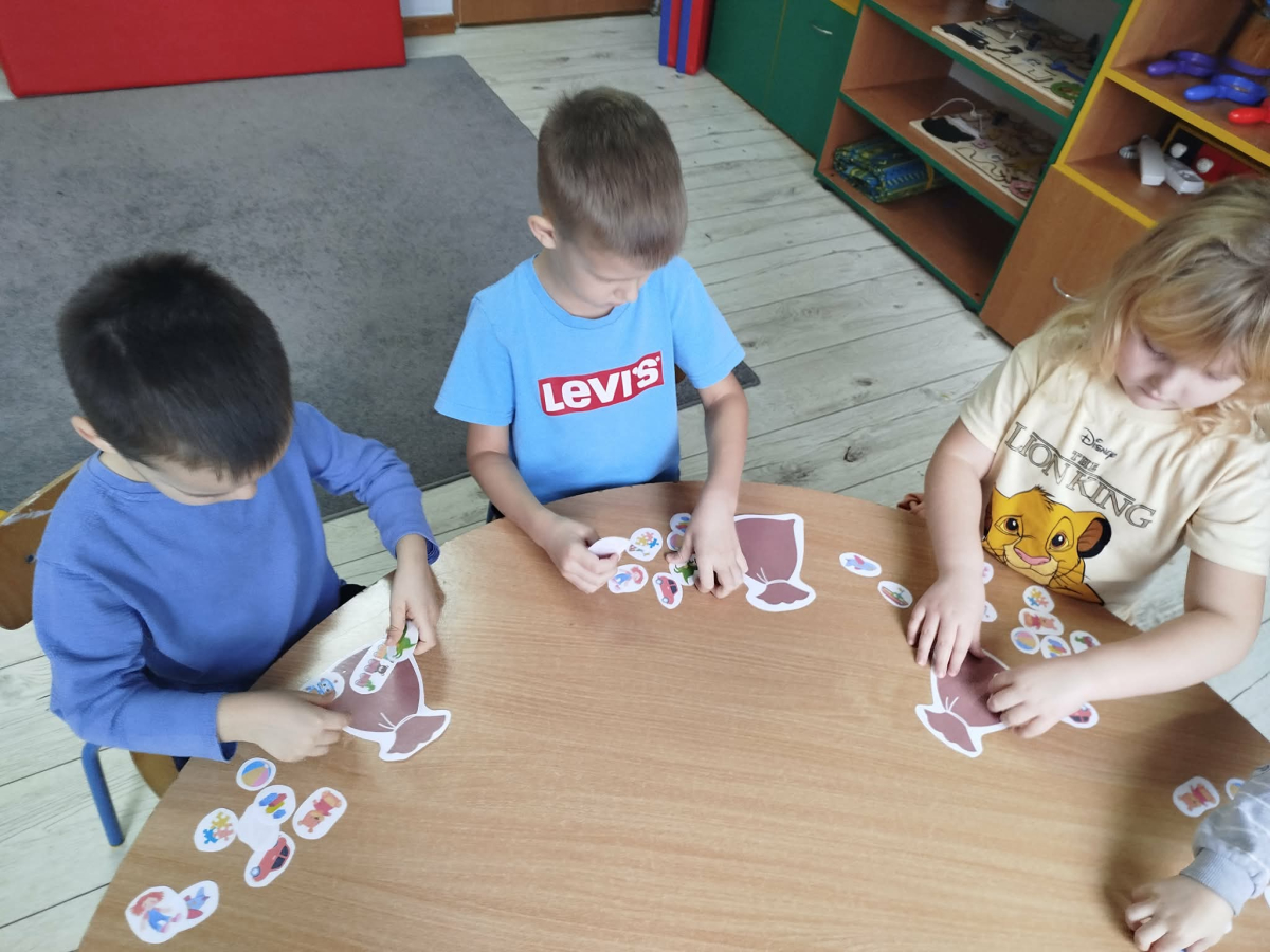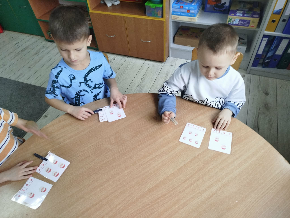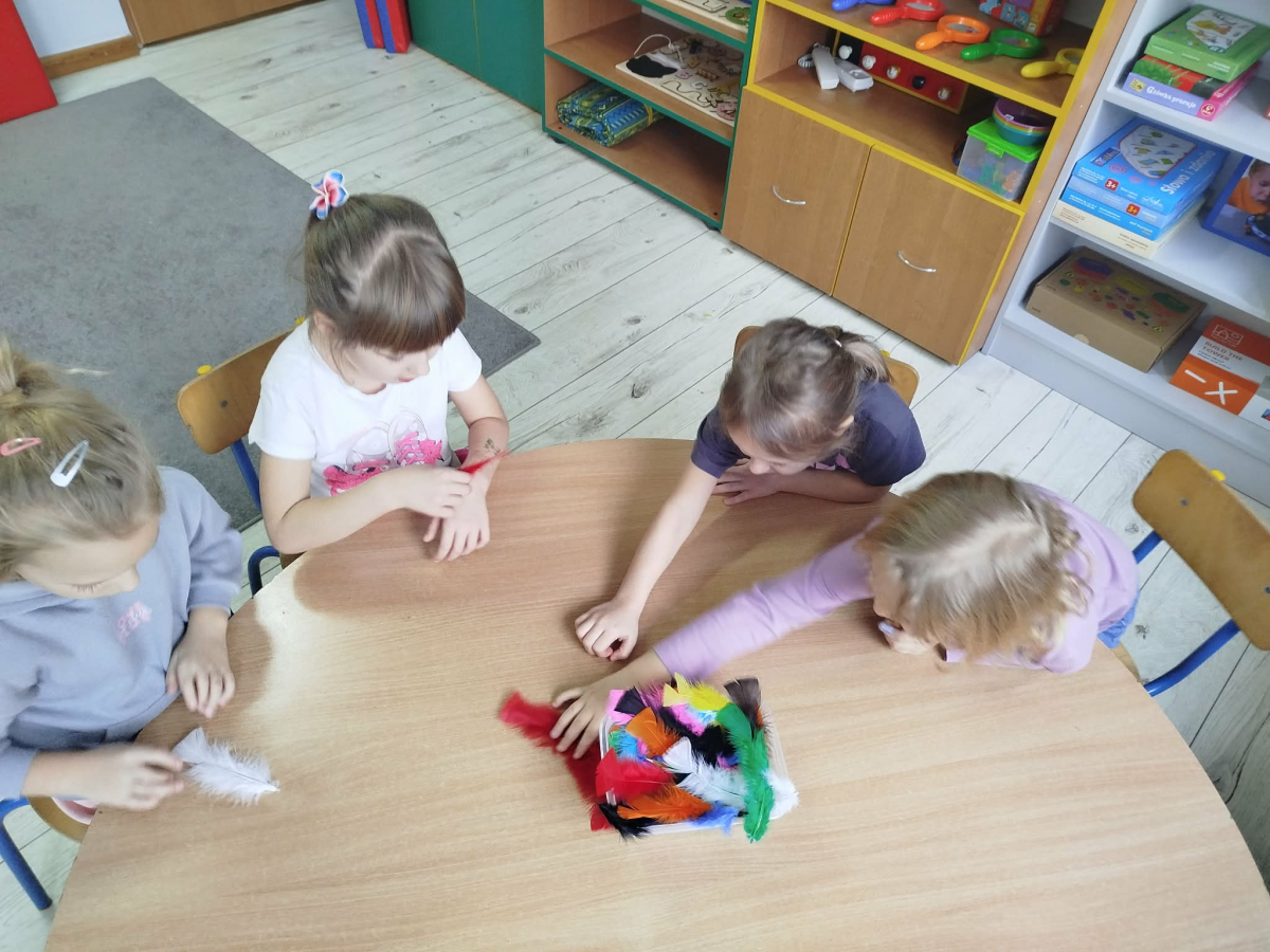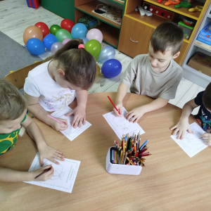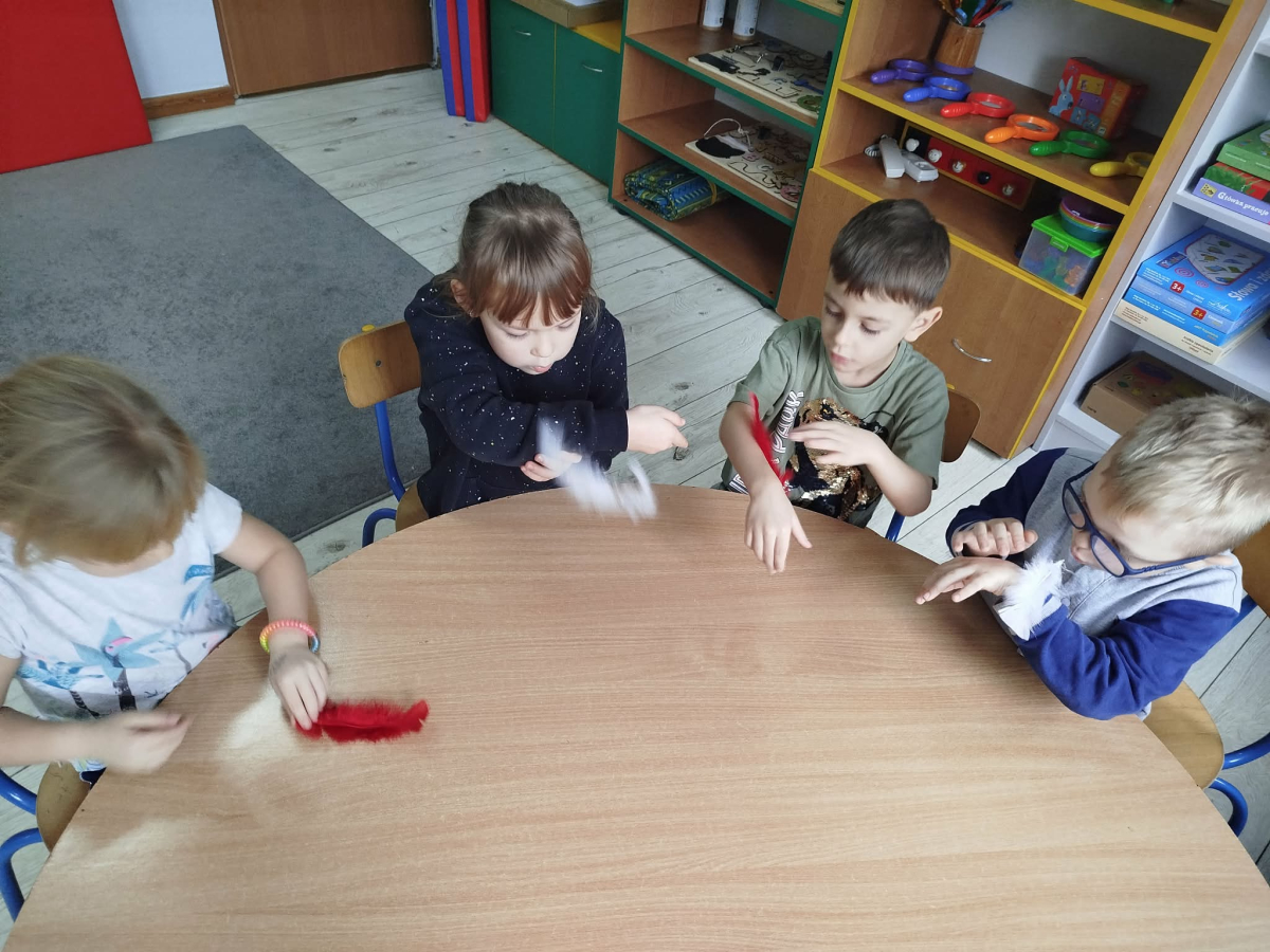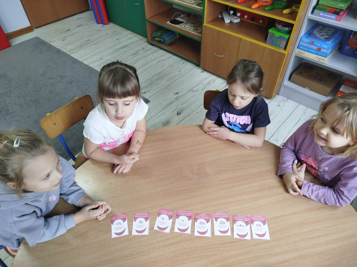 W czasie naszych zajęć dzieci usprawniały narządy artykulacyjne z obrazkami przedstawiającymi Mikołaja. Przedszkolaki ćwiczyły percepcję słuchową - miały układać na worku Mikołaja prezenty w odpowiedniej kolejności. Liczyły na materiale konkretnym. Wykonały pracę plastyczną „Czapka Mikołaja”.